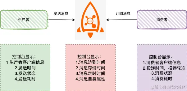 消息轨迹是指一条消息从生产者发送到 Broker , 再到消费者消费,整个过程中的各个相关节点的时间、状态等数据汇聚而成的完整链路信息。