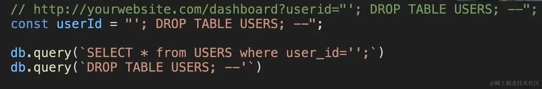 这是一个有效的 SQL 命令,查询的同时将删除所有用户。