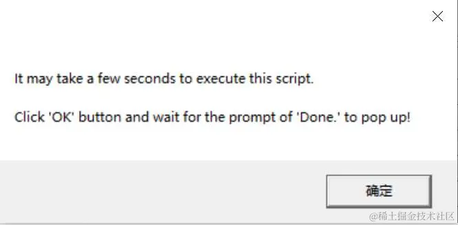 会提示安装补丁需要等待数秒。点击【确定】按钮后,过程大概 10 - 30 秒,如看到弹框提示 Done 时,表示激活破解成功:
