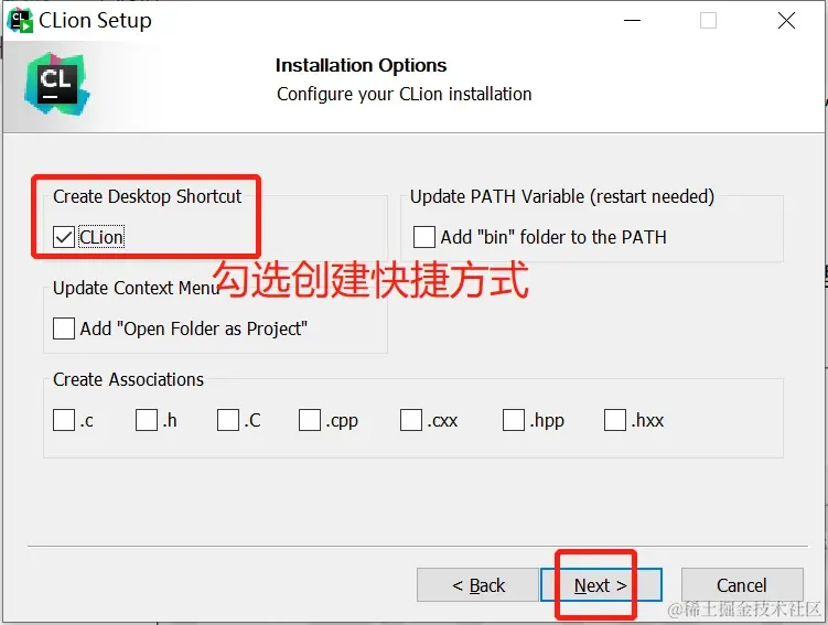 3.勾选创建桌面快捷方式,方便后续打开 Clion: