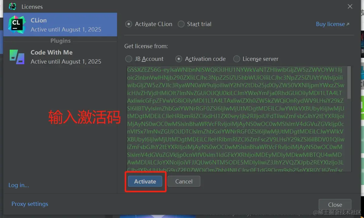 第六步:打开 Clion, 填入指定激活码完成激活