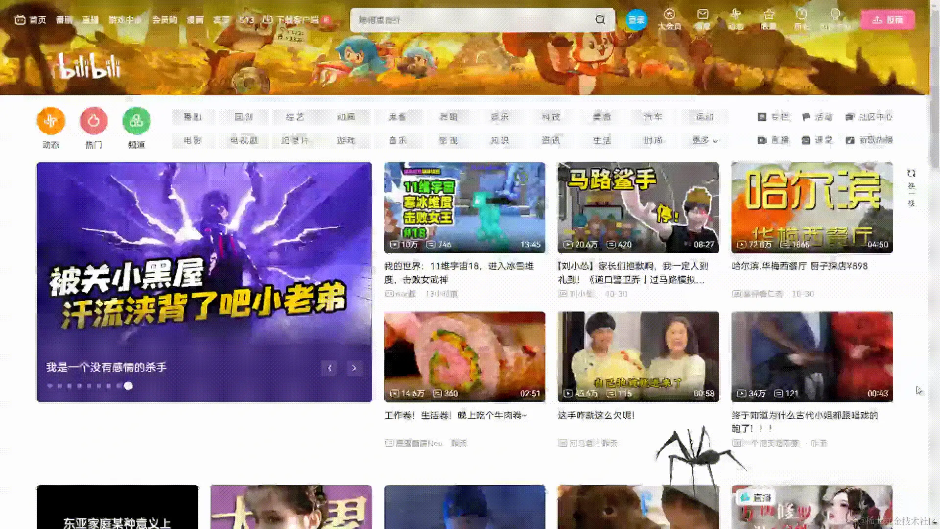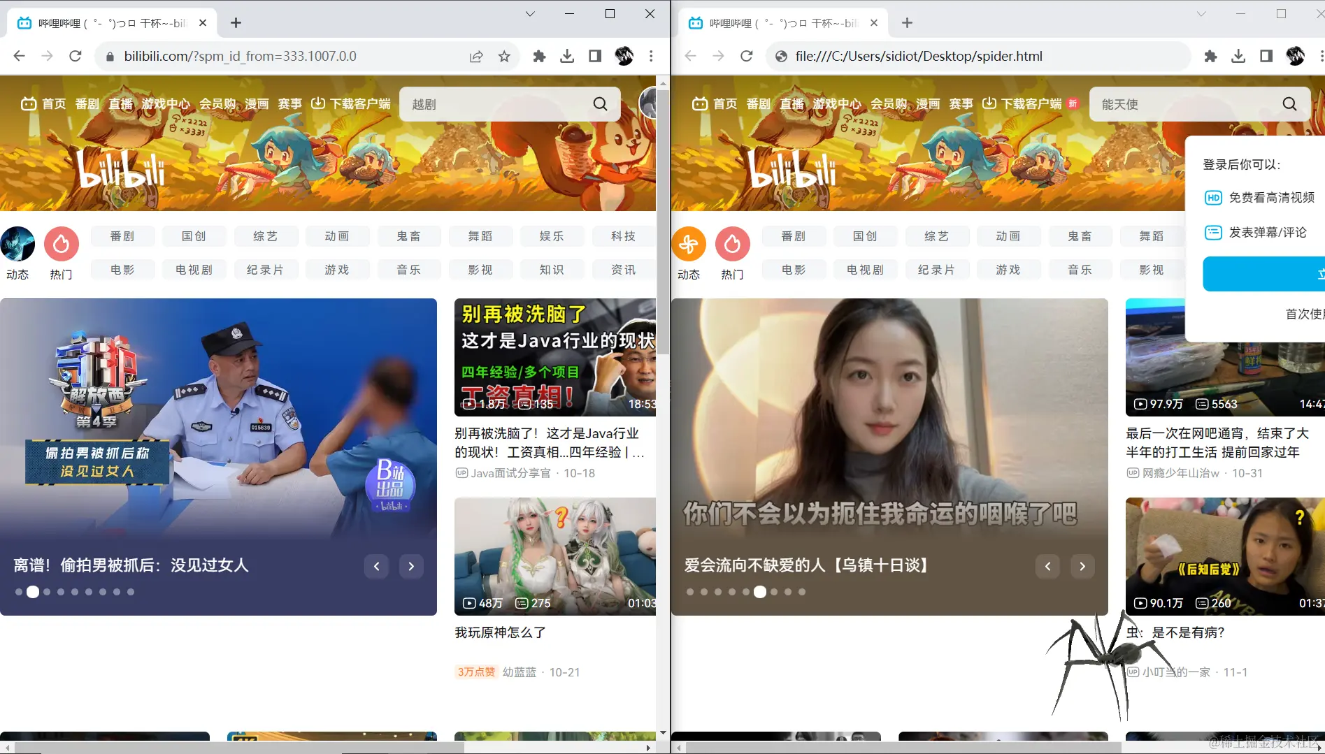 我们将以女朋友常用的网站(这里以小破站为例)作为背景进行执法钓鱼,然后移动小而可爱的蜘蛛。像这样: