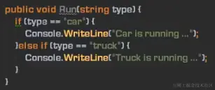 这时如果想要让这个对象可以调用Run方法,比较传统的方式是在 Vehicle 类中也加一个 Run方法,通过逻辑判断来决定是Car还是Truck
