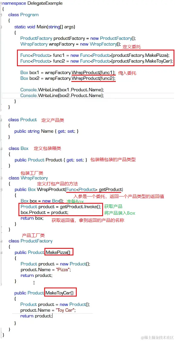 相当于方法中有一个填空题,需要传进来的委托来进行补充。一般在代码中部使用委托间接调用方法,获取返回值,之后根据返回值来进行后续的运算。