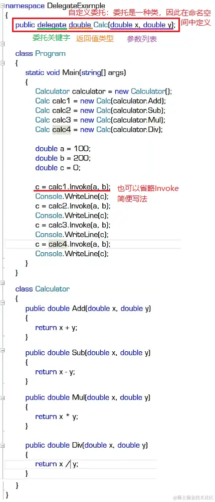 - 委托与所封装的方法必须 “类型兼容” (返回值类型、参数列表个数&类型)