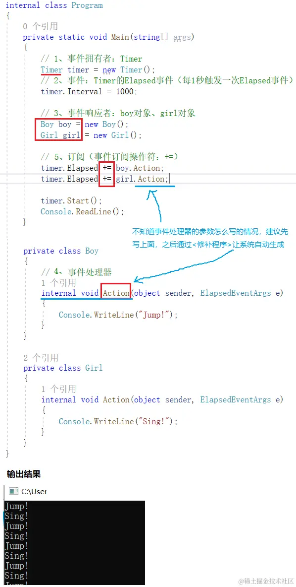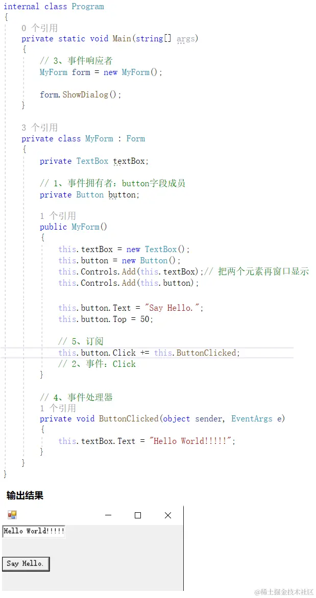 而在 C# 中的定义是:一个隶属于类/对象、能够使类/对象具备通知能力的成员。