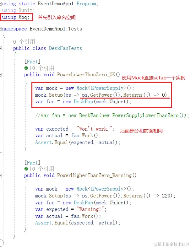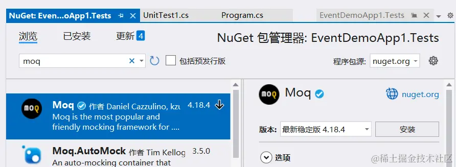 使用Moq可以直接创建实现接口方法的实例,越过创建类的步骤——简化单元测试。
