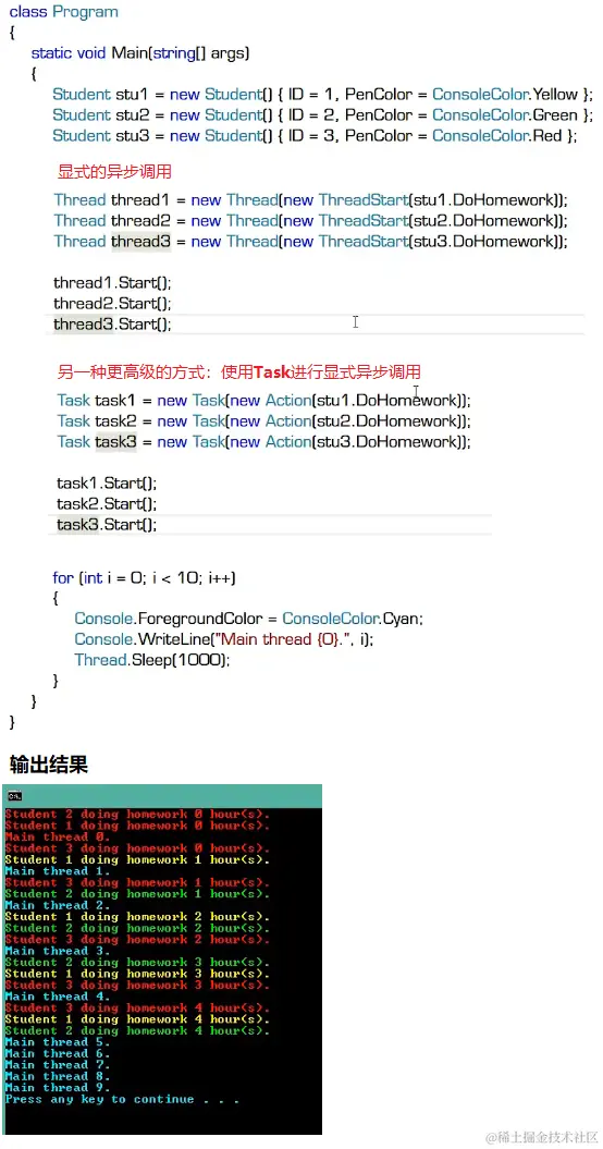 想要异步调用,需要使用委托提供的另一个方法:beginInvoke()