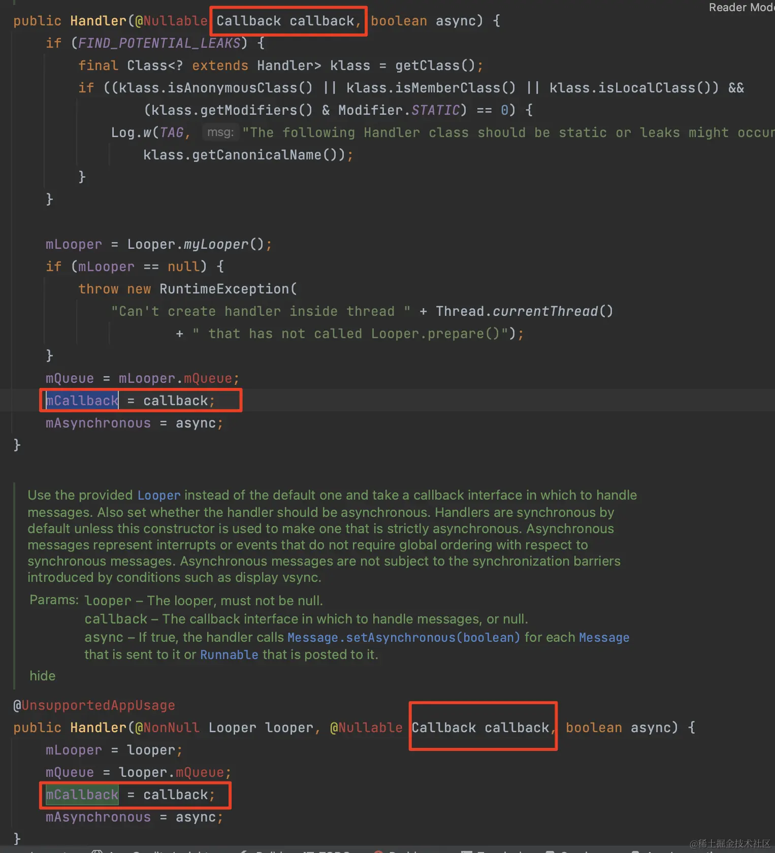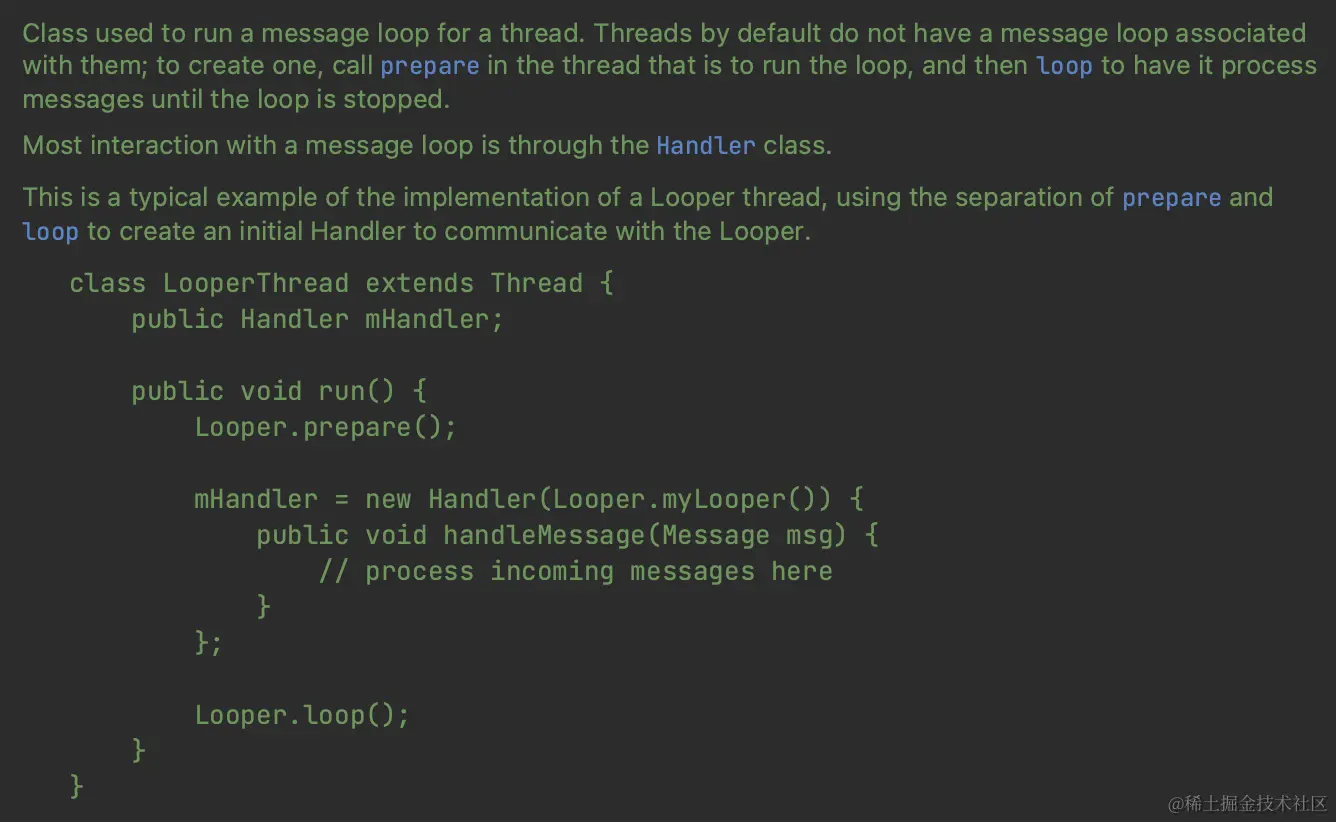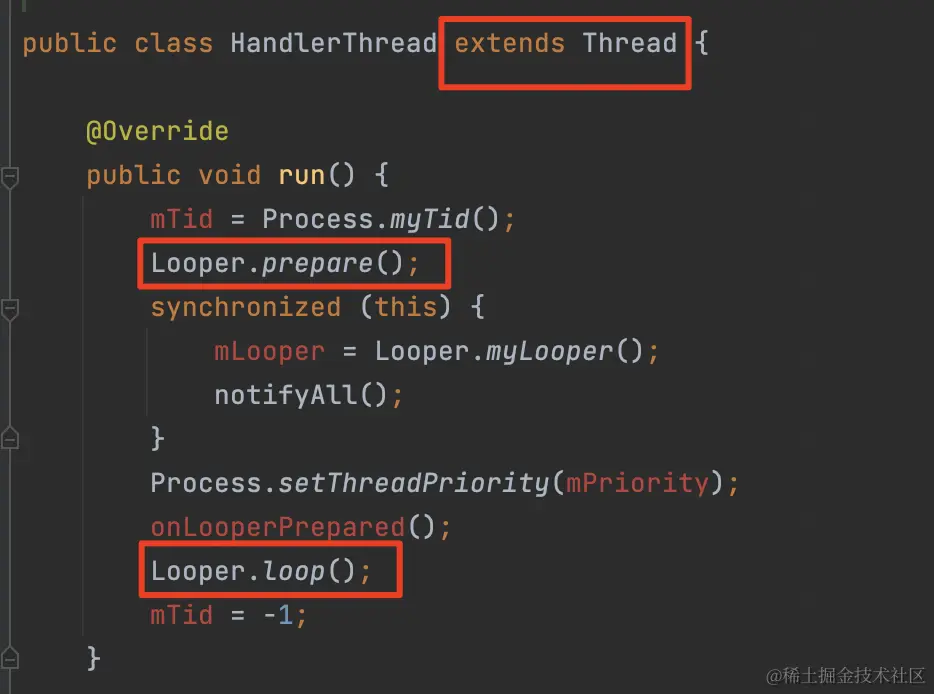 啊哈!就是这里,当调用getLooper方法,获取Looper的时候,如果发现mLooper为null,则阻塞,直到它被成功赋值,才会唤醒阻塞在这的线程。