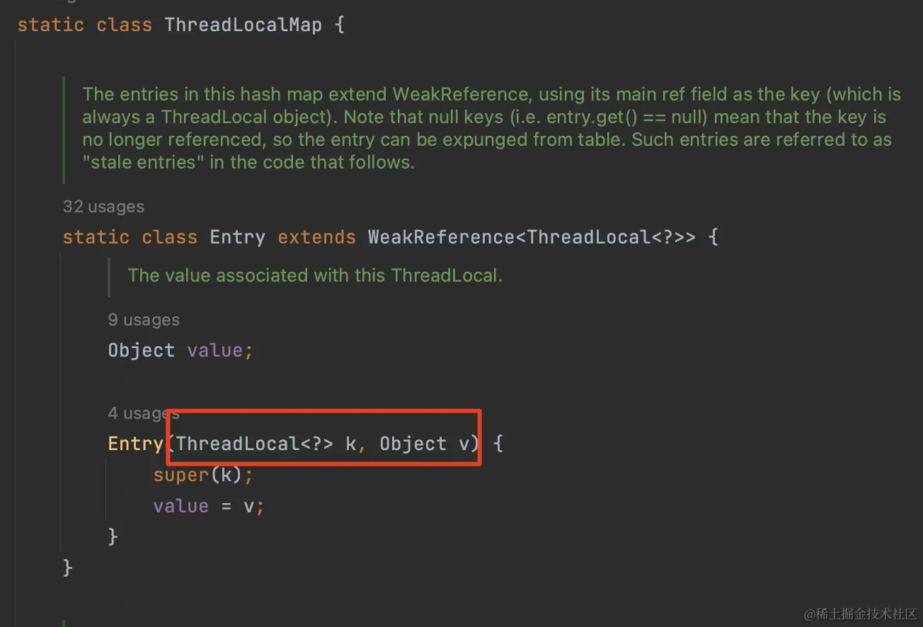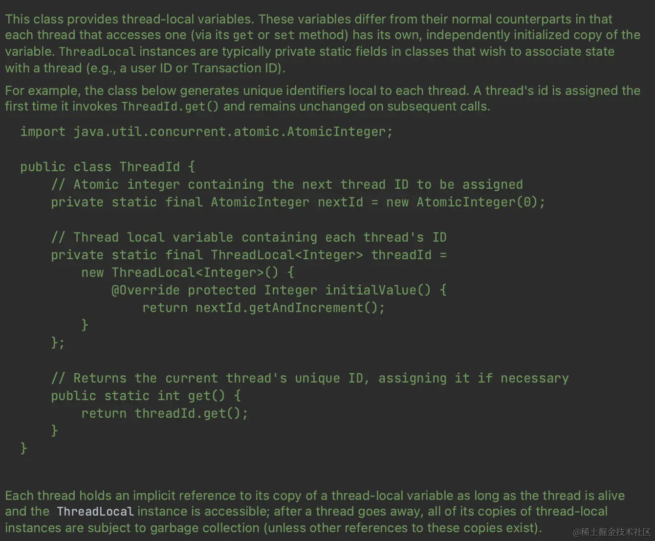 只看这些,基本很难懂。因地制宜,对于理解ThreadLocal,我们或许可以不看源码的定义,转而看他的使用。也就是它的get方法,和set方法。