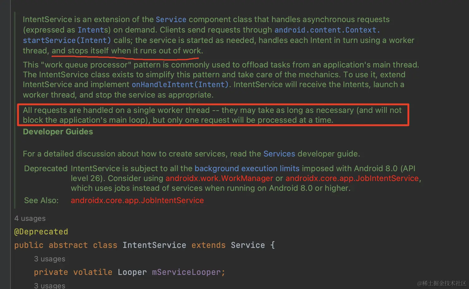 所以,它是一个可以在子线程执行耗时任务,同时只能执行一个任务,并且在所有任务执行完后,可以自动停止的Service。
