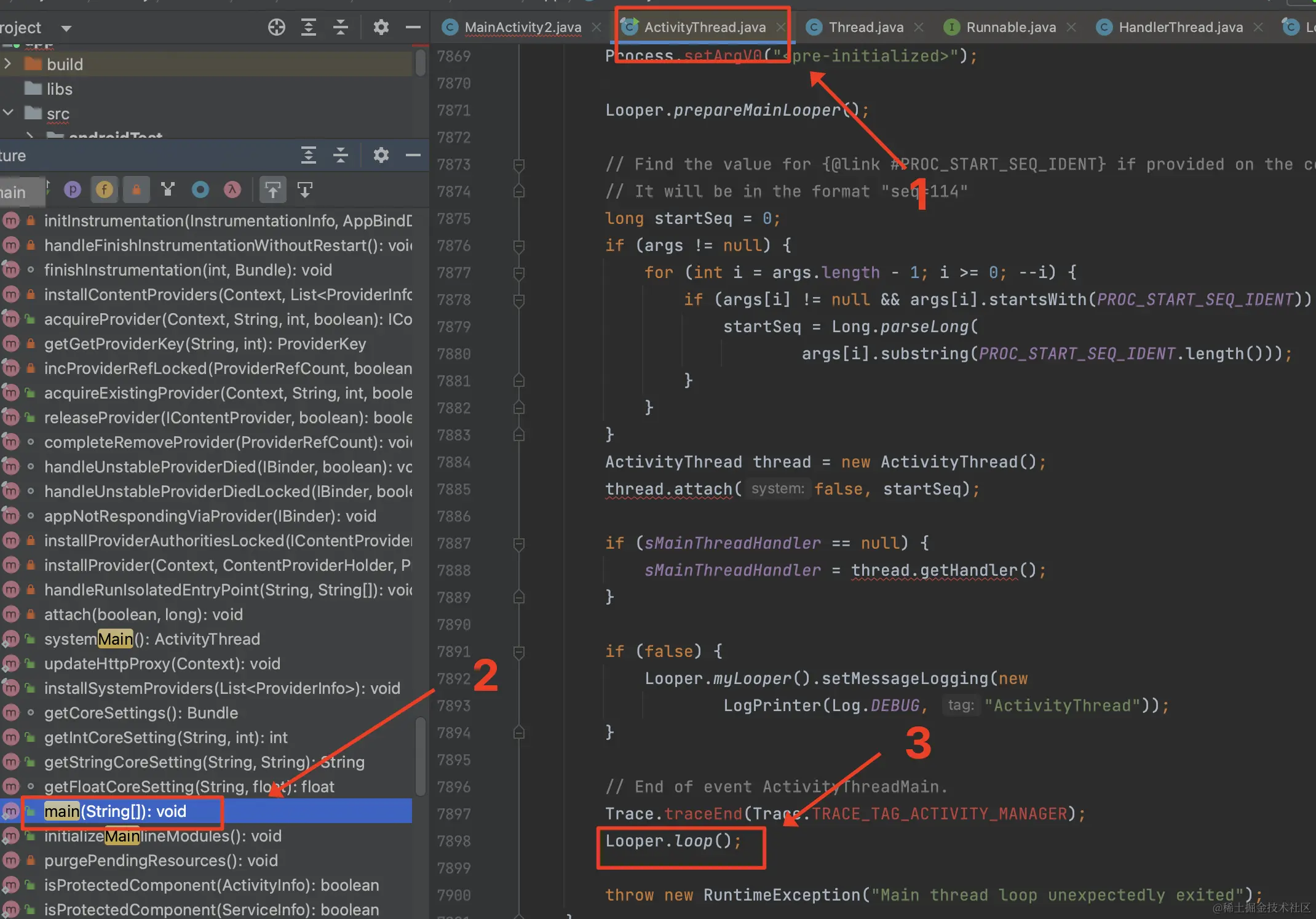 (2)主要有两个作用,一是调度Message/Runnable,二是进行线程间通信