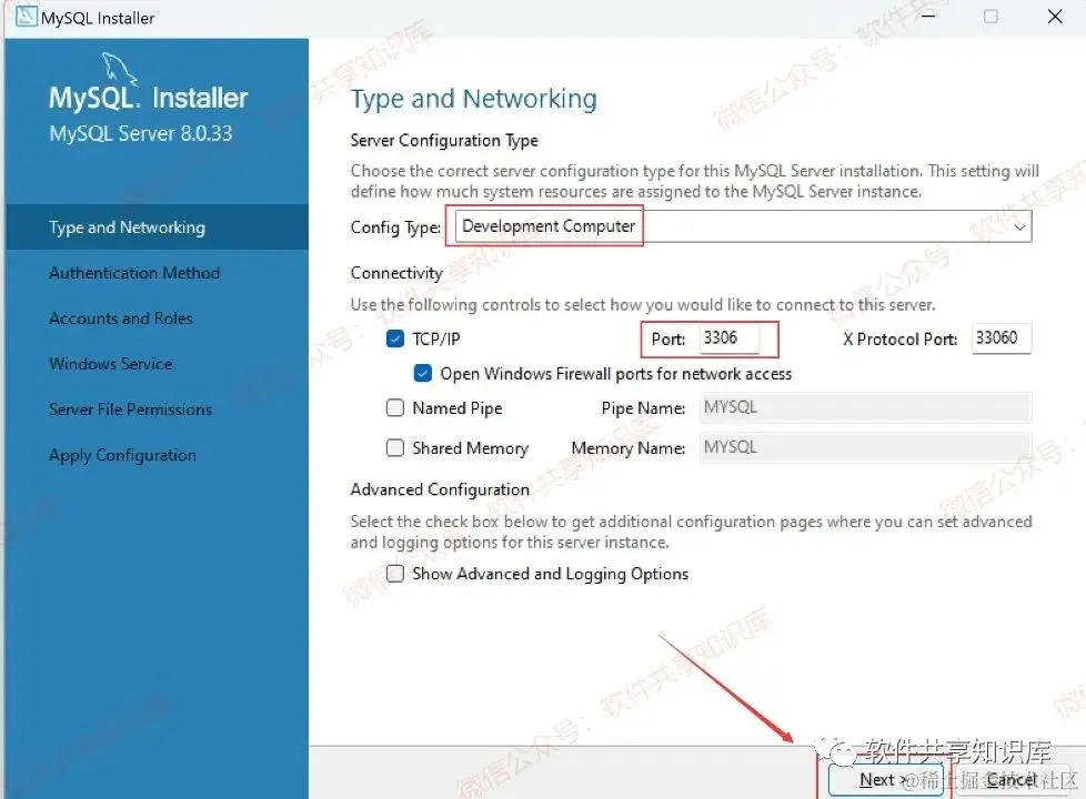 10.设置端口,默认3306,就默认就行,直接点击Next。