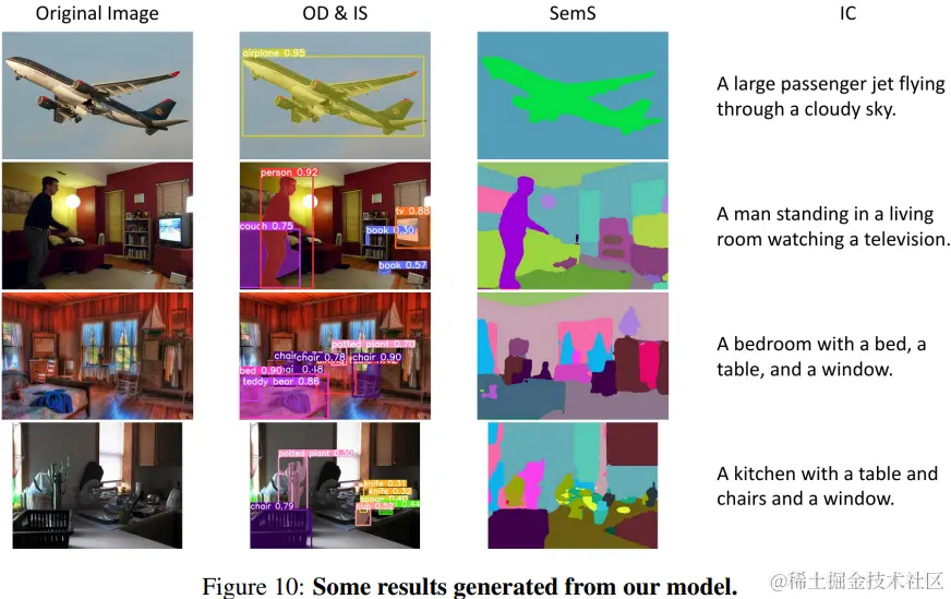 这些头部的输出可以用来捕获具有足够语义信息的特征,这些特征可以满足文本编码器的需求。在编码器端处理不同视觉任务可以让系统获得具有不同语义的输出。在本文提出的系统中,不同的前景对象依靠目标检测和实例分割来获取准确的信息,而正确的背景信息则由语义分割提供。至于图像字幕生成任务的文本解码器,作者则是直接使用Transformer解码器。具体地,可以将图像编码器和文本解码器一起训练。这使得模型变得轻巧高效,同时降低了训练资源的消耗。
