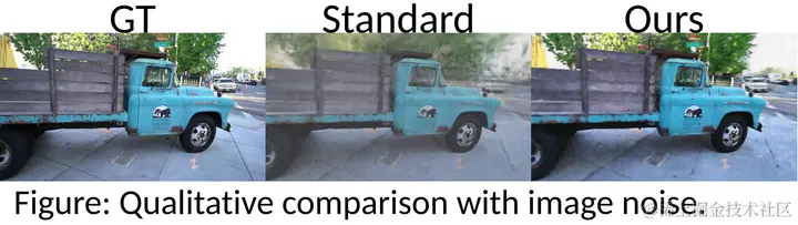 不仅如此,还可以提高对图像噪音的鲁棒性。如下图所示,S3IM的渲染结果明显去掉了图像里灰蒙蒙的噪音。