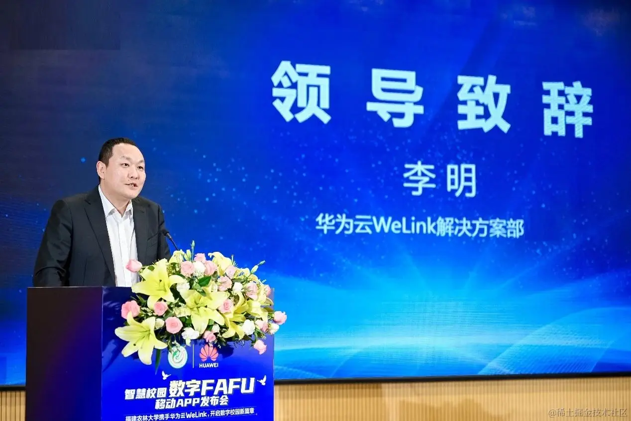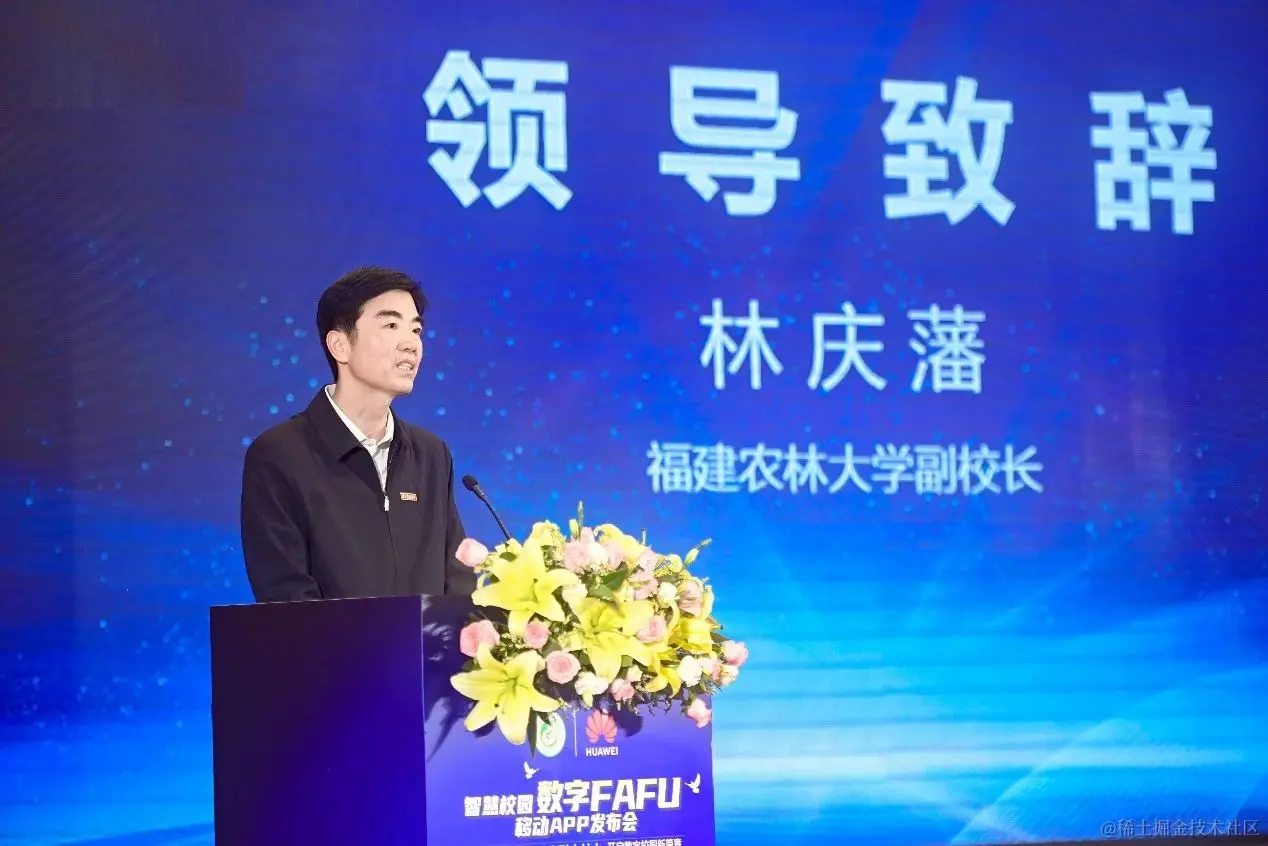 福建农林大学副校长林庆藩在致辞中表示,学校党委始终高度重视智慧校园建设,并将其作为学校“五位一体”总体发展布局的重要组成部分。目前,学校正全力推进基于华为云WeLink打造的“数字FAFU”平台建设,并以新版APP上线为契机,按照“数据共享、业务整合、一站式服务”的原则,不断提升将应用服务融为一体的移动端平台。面向未来,学校将紧抓教育数字化发展的战略机遇,把教育数字化建设作为推动学校高质量发展的重要抓手,基于智慧校园建设的目标,持续推动学校治理体系和治理能力现代化,为学校“双一流”大学建设增光添彩。