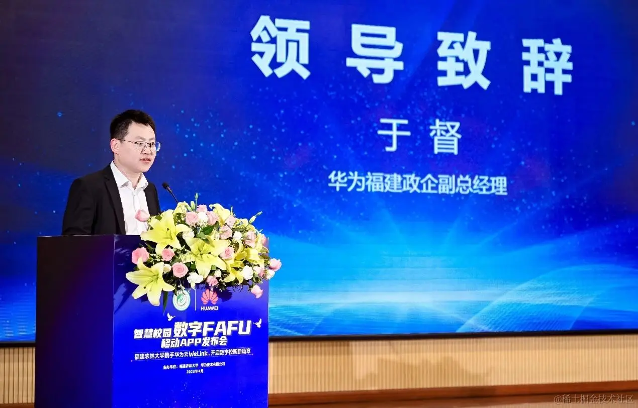 华为福建政企副总经理于督在致辞中指出,在教育数字化转型的大背景下,智慧校园建设已经成为全球教育信息化发展的新趋势。作为福建农林大学建设智慧校园的重要成果,基于华为云WeLink打造的“数字FAFU”APP,全面连接师生、校务、资讯、IOT等关键要素,为福建农林大学全校师生带来全方位的体验提升、效率提升和模式创新,真正让数字化工具使能业务,让学习、办公、生活变得更美好。未来华为公司将持续深耕数字化转型的核心技术,为福建农林大学树立坚实的数字化基座,与福建农林大学共同拥抱智慧教育新时代。