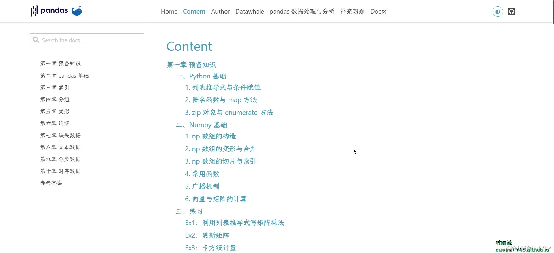 教程共有十章,可分为三大模块:基础知识、四类操作、四类数据,涵盖了 pandas 的所有核心操作与特性。