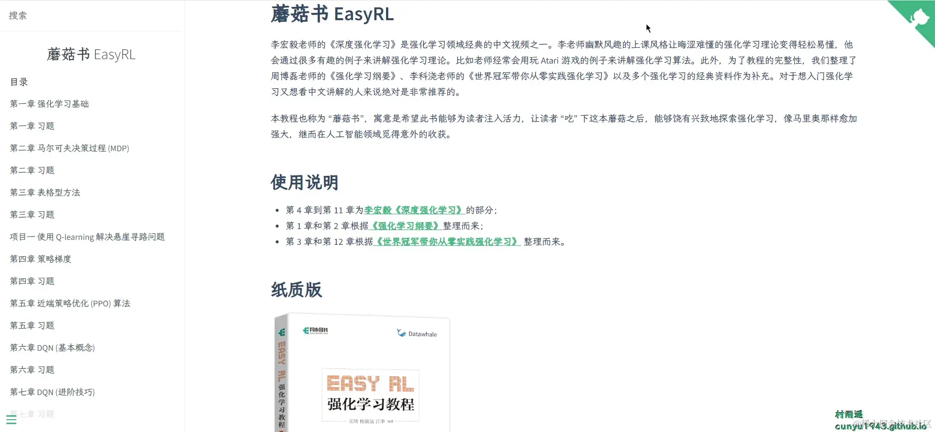 本书结合了李宏毅老师的 “深度强化学习”、周博磊老师的 “强化学习纲要”、李科浇老师的 “世界冠军带你从零实践强化学习” 公开课的精华内容,在理论严谨的基础上深入浅出地介绍马尔可夫决策过程、蒙特卡洛方法、时序差分方法、Sarsa、Q 学习等传统强化学习算法,以及策略梯度、近端策略优化、深度 Q 网络、深度确定性策略梯度等常见深度强化学习算法的基本概念和方法,并以大量生动有趣的例子帮助读者理解强化学习问题的建模过程以及核心算法的细节。