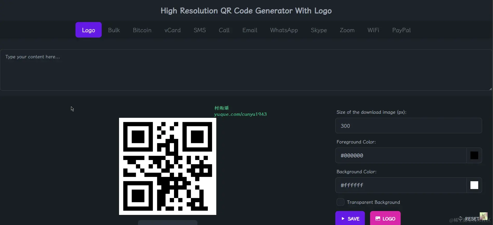 Logo、批量生成(点击相应按钮) - 支持快捷键(可设置)