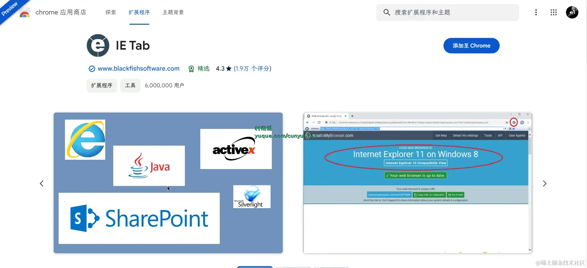 在 Chrome 中使用 IE 显示网页。使用 Java、Silverlight、ActiveX、Sharepoint 等。