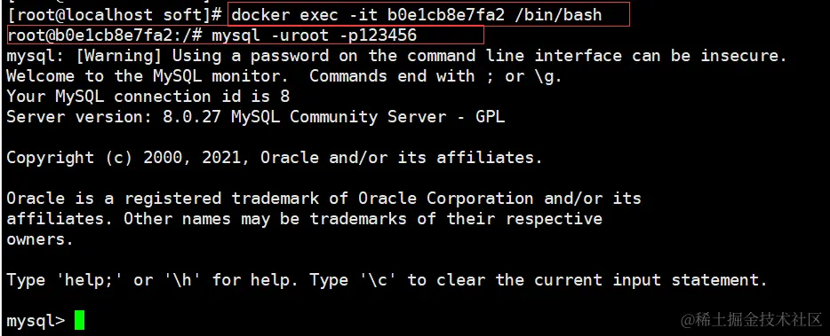 执行该命令后,MySQL容器将在后台以守护进程方式运行。你可以通过访问主机的3306端口来连接到MySQL服务器,并使用设置的root密码进行身份验证。