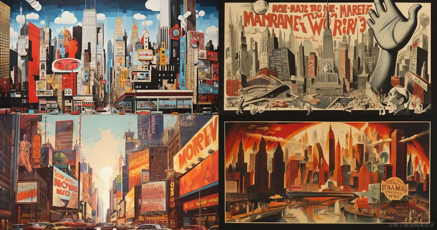 一幅卡通图像,以粗体字体展示曼哈顿的景象,哈利·舒尔伯格,