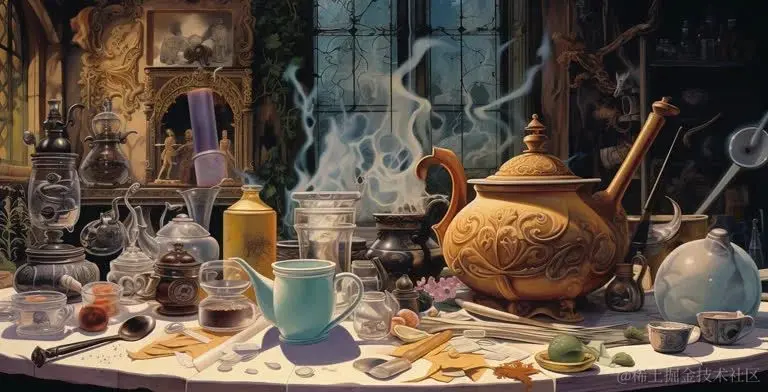 书和奶茶的水彩画,风格为 les automatistes,