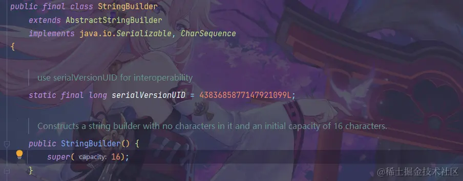 首先一开始我们就说 Java字符串就是Unicode字符序列,既然是Unicode字符那自然而然就能想到字符串是使用字符数组进行存储的,在JDK源码上有这样一段注释: