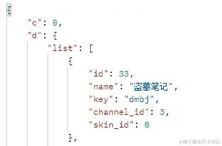 2、定位数据中list列表的第一个数据的name属性jsonData.d.list[0].name