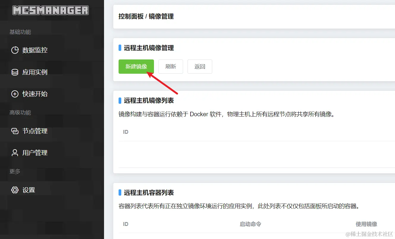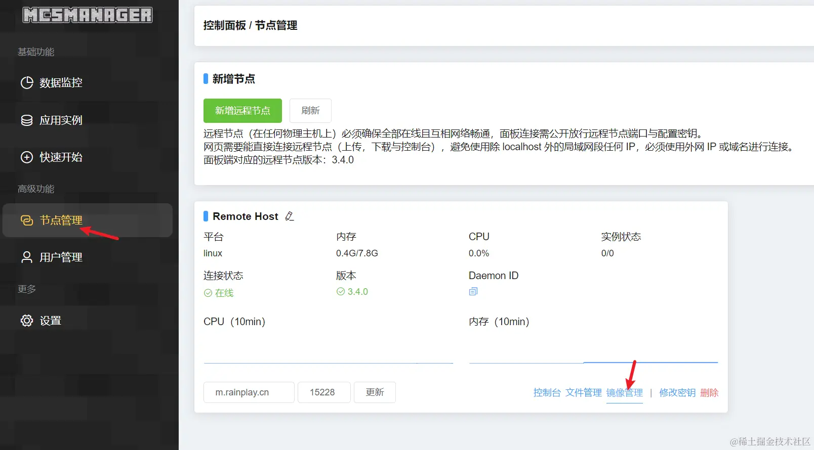 进入面板,在节点管理这找到镜像管理点击进去