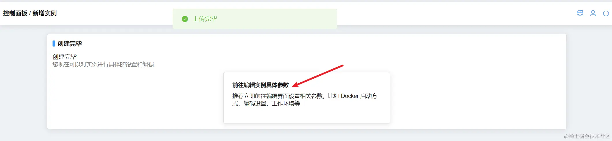 等待上传完成后点击 前往编辑实例具体参数