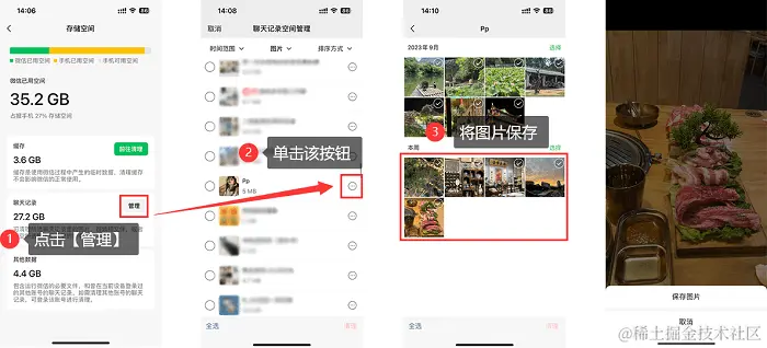 方法二:在聊天记录空间管理中恢复微信过期照片