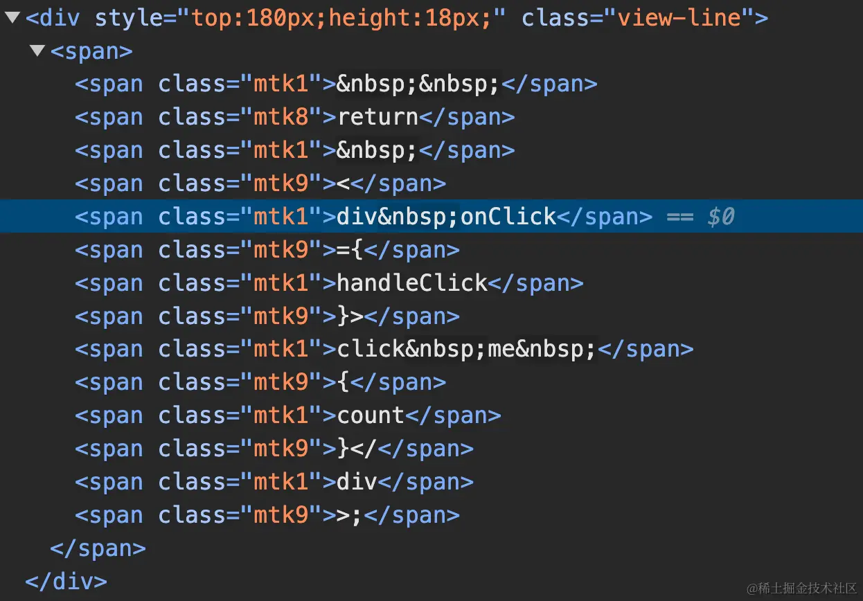 可以看到解决之后编辑器渲染的html标签中对jsx的标签、属性和括号添加了类名。