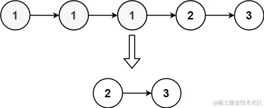 输入:head = [1,1,1,2,3] 输出:[2,3]