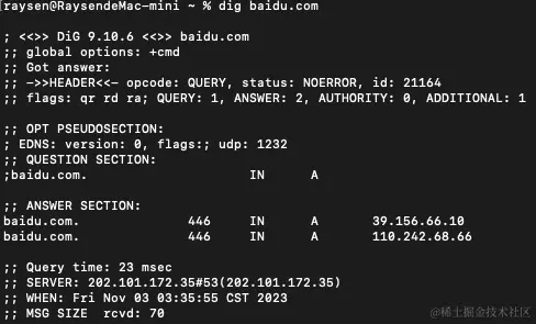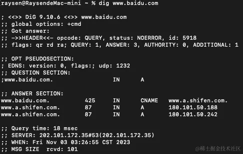 dig:也是一个用于查询DNS记录的工具,功能比nslookup更强大。例如,要查询域名baidu.com的IP地址,可以在命令行中输入