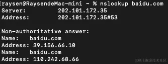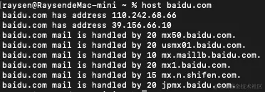 host:用于查询域名的IP地址和其他DNS记录。例如,要查询域名baidu.com的IP地址,可以在命令行中输入
