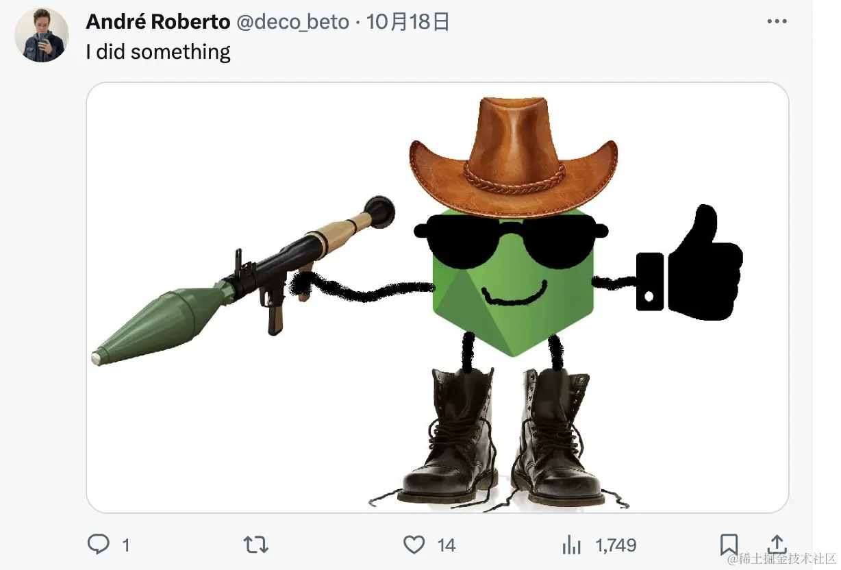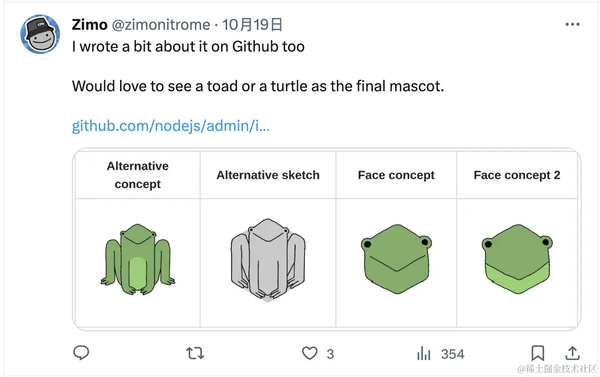Node.js 于 2023 年 10 月 17 号 在其 X(原 Twitter)官方账号下宣布了关于 Node.js 吉祥物设计大赛,目的是寻找一个新的吉祥物来做为 Node.js 的代言人 💚