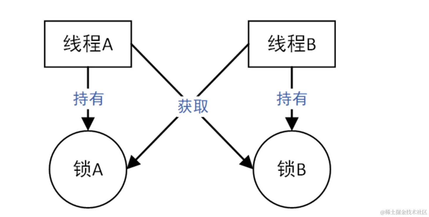 - 互斥条件:多个线程需同时访问一个共享资源,但每次只能有一个线程访问该资源;
