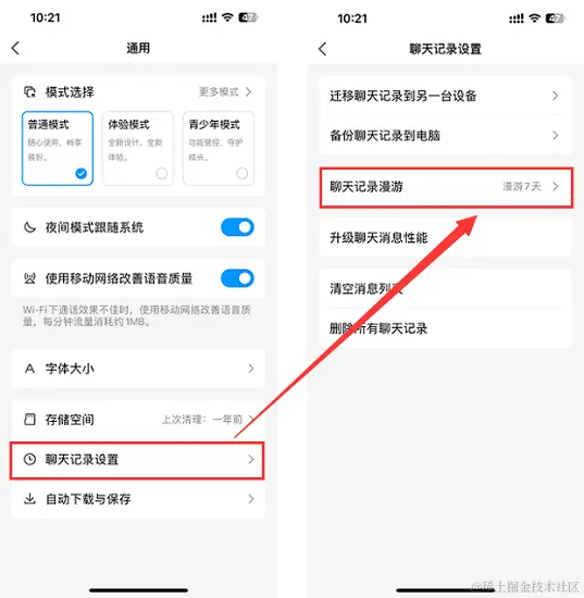步骤2:请大家依次点击【设置】——【通用】——【聊天记录设置】——【聊天记录漫游】这几个选项。