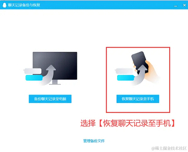 步骤2:在弹出页面中选择【恢复聊天记录至手机】选项。