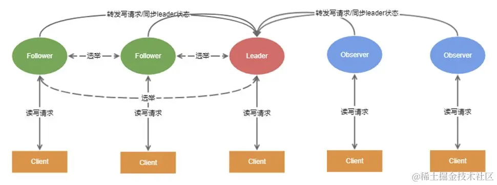 - 每个Server在内存中存储了一份数据,Client的读请求可以请求任意一个Server。