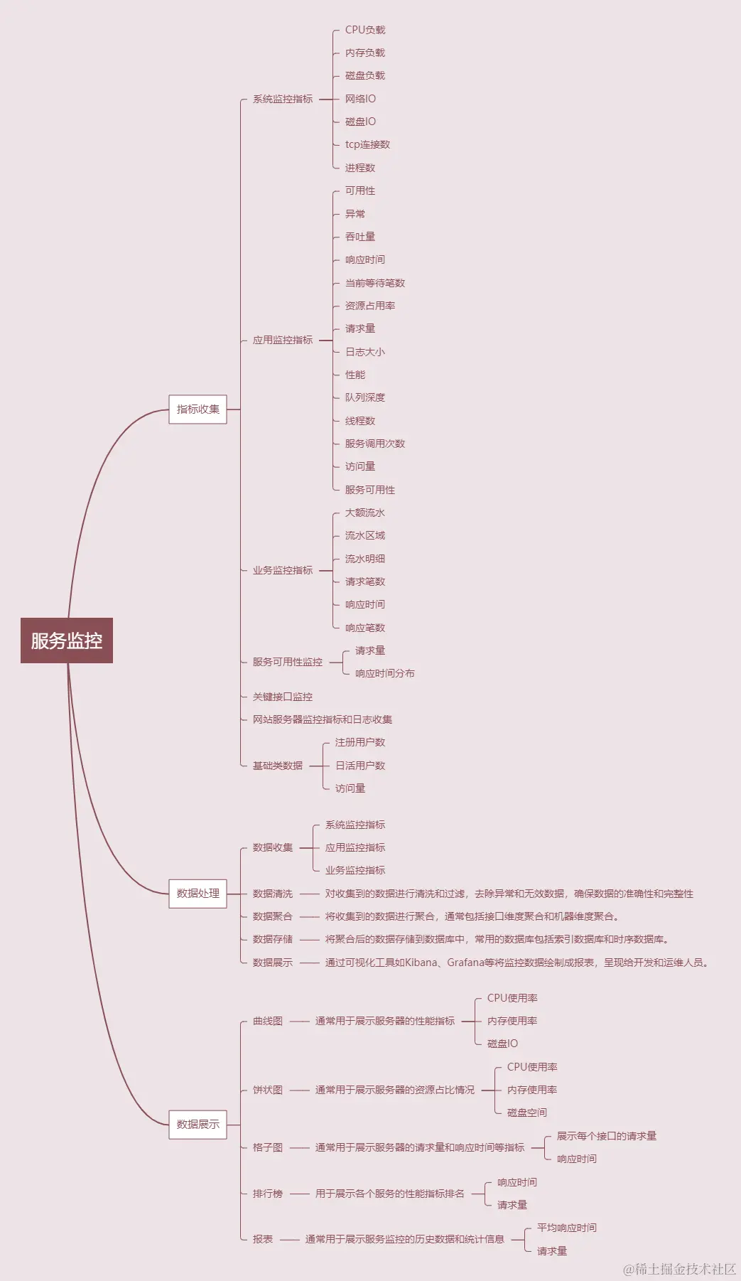 在收集这些指标时,通常会使用一些工具和技术,如接口采集、客户端agent采集、通过网络协议主动抓取等。同时,还需要对收集到的数据进行处理和分析,以提供对服务监控的有用信息,如生成报告、报警通知等。