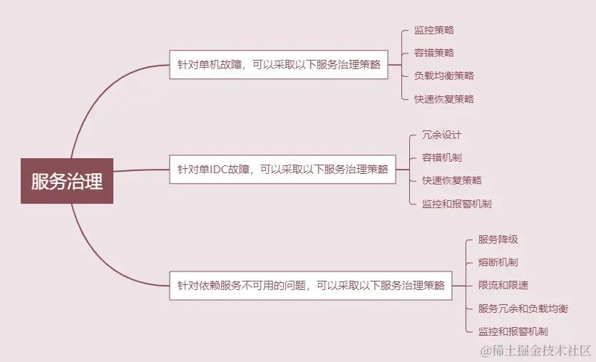 针对单IDC故障,服务治理需要采取冗余设计、容错机制、快速恢复策略以及监控和报警机制等手段来保证服务的可用性和稳定性。通过这些手段,可以有效地降低单IDC故障对业务的影响。