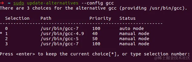 sudo update-alternatives --install /usr/bin/gcc gcc /usr/bin/gcc-7 70