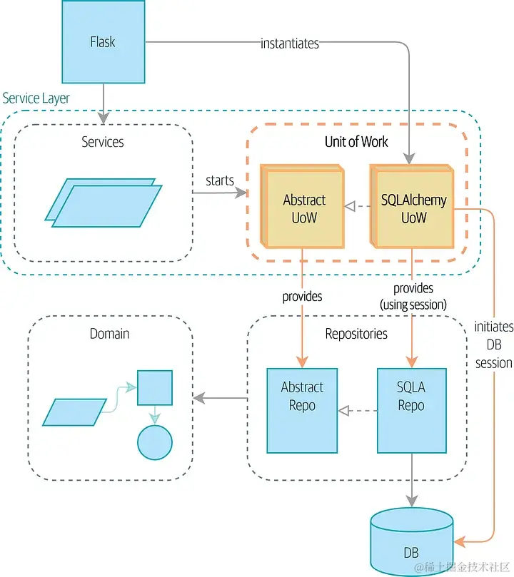 工作单元(UoW)的作用是确保在上下文管理器中进行的所有更改都以单个原子操作的方式保存到数据库中。