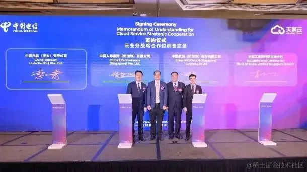 最后,大会召开了天翼云全球行·亚太站启动仪式,中国电信国际公司副总经理李康、中国电信亚太公司总经理李青、中资企业(新加坡)协会会长谭志勇、飞书副总裁何斌、用友软件新加坡私人有限公司执行董事总经理陈崑、中国人寿保险(新加坡)有限公司总经理林向阳、中国航油(新加坡)有限公司CEO林奕、中国工商银行新加坡分行行长杨雨共同参与,见证了中国电信天翼云全球之旅亚太站的新征程。新加坡成为继今年6月16日中国电信在香港举办首场全球发布会后,天翼云展开国际之旅的第一站。