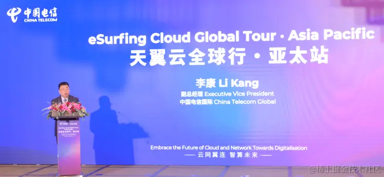 中国电信国际公司副总经理李康向新加坡中企协会及广大客户、各界伙伴对中国电信长期以来的支持和信赖表达感谢,并正式宣布天翼云落地亚太,开启新征程。他在致辞中提到,“ 天翼云正式出海落地亚太,是中国电信深耕亚太地区、助力亚太数字化转型的有力践行。”