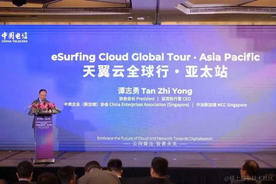 特邀嘉宾中资企业(新加坡)协会会长谭志勇在致辞中提到,“中国电信亚太公司总部多年来在新加坡扎根,与新加坡企业共同成长,凭借其强大的云网资源能力、专业的信息化服务能力为新加坡的数字经济建设、社会进步及民生改善做出了重要贡献,充分发挥了驻新中资企业的积极作用。”他最后表示,“希望大家共同努力推进新加坡科技创新迈上新的台阶,不断增强新加坡发展动能。”