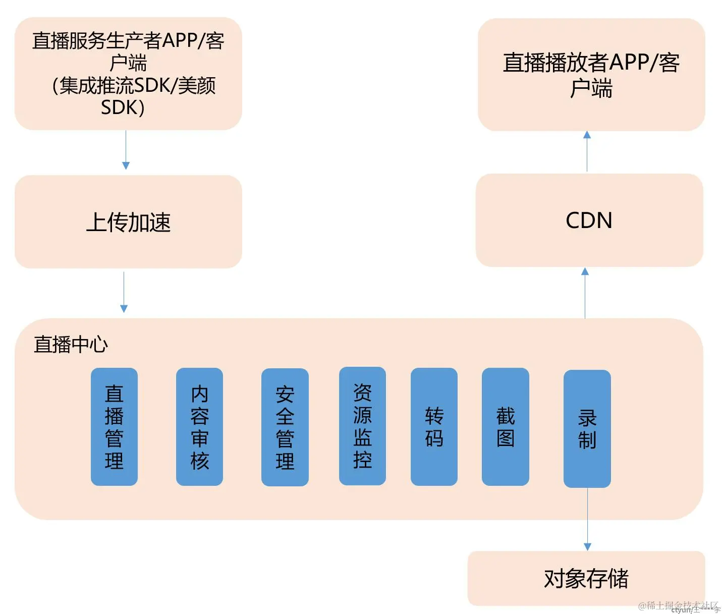 因此,直播服务提供商需要提供直播录制和归档能力,整个流程中,与存储相关的只有在录制时会把录制的视频保存在对象存储中